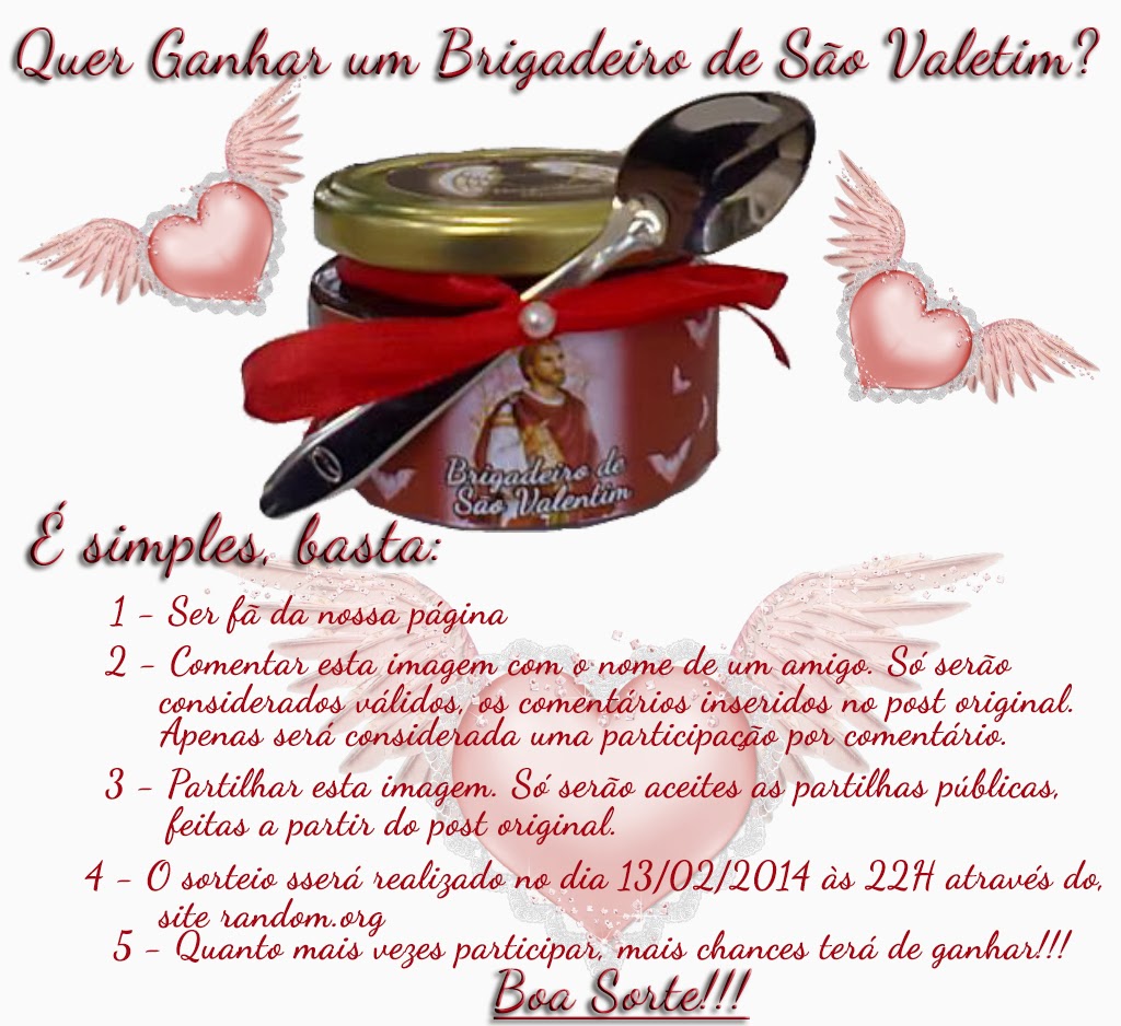 Quer ganhar um Brigadeiro de São Valentim? Clique AQUI e participe no sorteio que será realizado na nossa página do Facebook. Boa Sorte!!